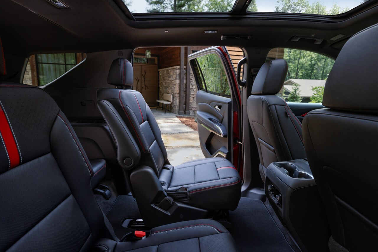 Inside, the Chevrolet Traverse offers flexible seating for up to eight passengers, with available seven-passenger configurations featuring second-row captain's chairs. The cabin offers generous space across all three rows, ensuring comfort for passengers traveling to destinations such as Defiance, OH. Premium features include available perforated leather-appointed seating, heated and ventilated front seats, and power-folding third-row seats that maximize cargo versatility.