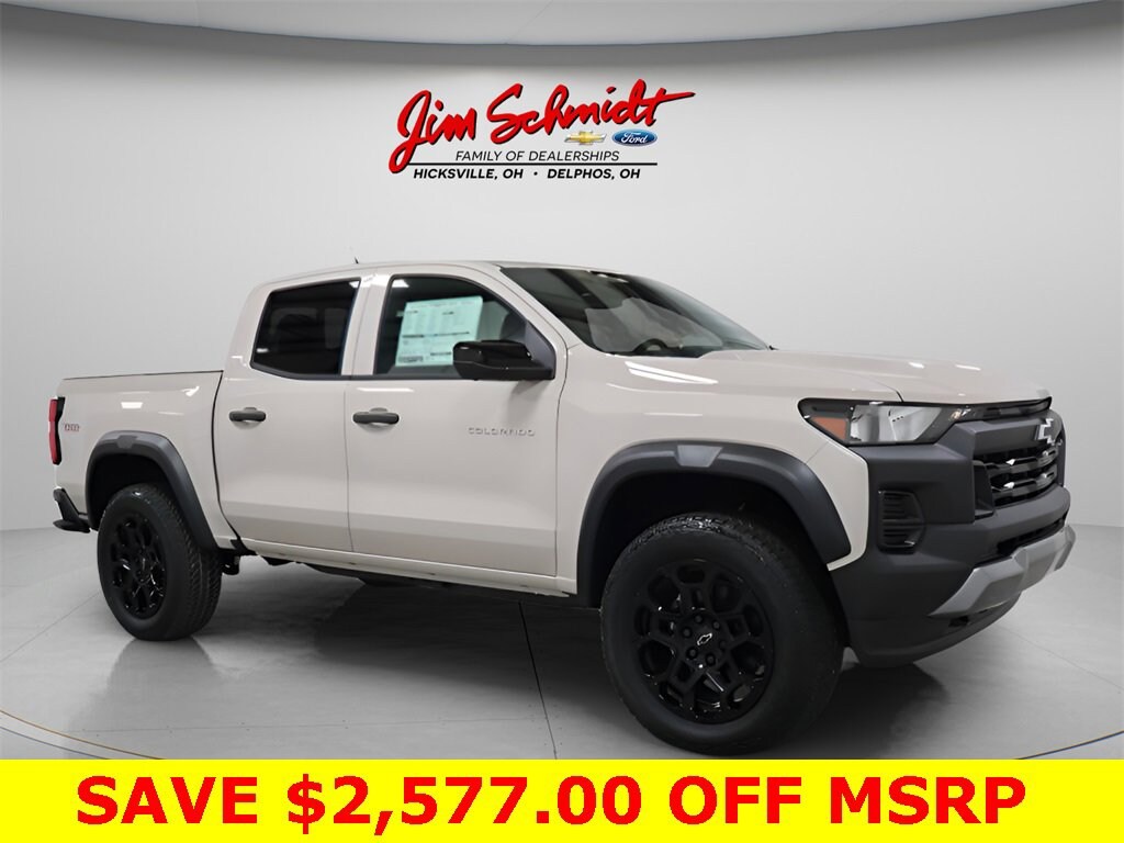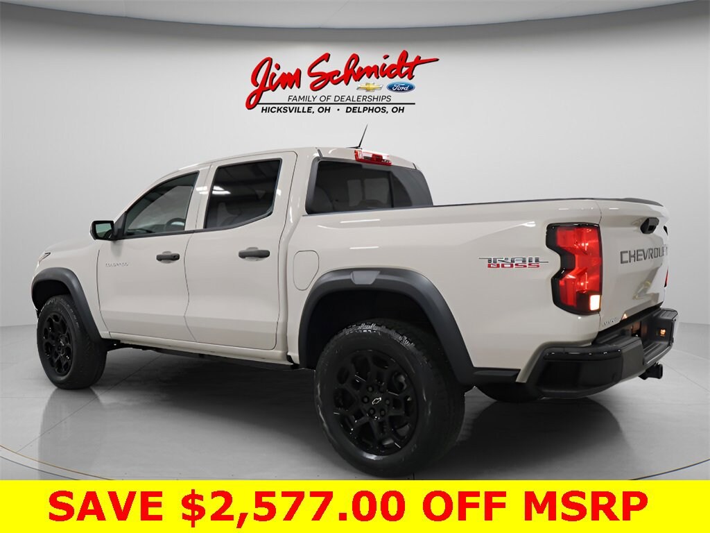 Factory MSRP: $48,260 $2,577 off MSRP! **Now only $ 45683!** Apple Carplay / Android Auto, Rear View Back Up Camera, 2026 Chevrolet Colorado in White Sands with Jet Black Cloth with a 2.7L I4 Turbocharged DOHC 16V LEV3-ULEV50 310hp., Bluetooth, Blind Spot Monitor, Lane Departure Warning System, Forward Collision Alert Sensor Indicator, Rear Cross-Traffic Alert, Serviced, Inspected & fully detailed, 4-Spoke Wrapped Steering Wheel, 6 Speakers, 8-Way Power Driver Seat Adjuster, Adaptive Cruise Control, AM/FM radio: SiriusXM with 360L, Evotex Seat Trim, HD Surround Vision, Heated Steering Wheel, intermittent wipers, Power Driver Lumbar Control Seat Adjuster, Rear Pedestrian Alert, Remote Vehicle Starter System, Technology Package, Trail Boss Convenience Package II, Wheels: 20 x 9 High Gloss Black Aluminum, Wireless Phone Charging.