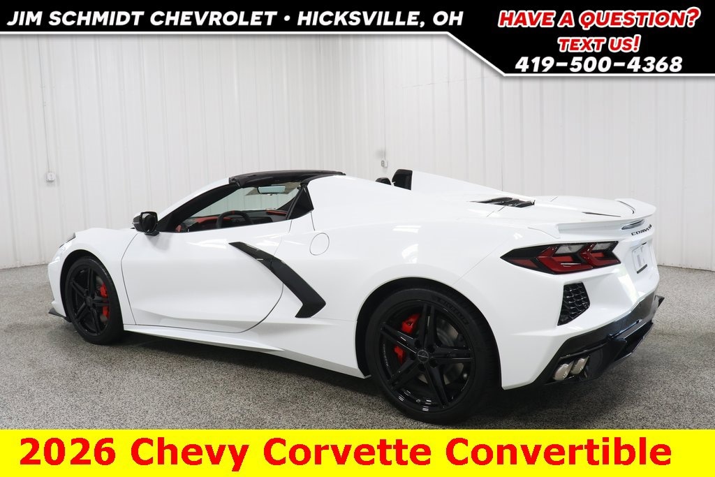 Factory MSRP: $103,535 $8,535 off MSRP! **Now only $ 96000!** GPS / Navigation System, Apple Carplay / Android Auto, Rear View Back Up Camera, 2026 Chevrolet Corvette in Arctic White with Red Leather with a 6.2L V8., Bluetooth, Heated and Cooled Leather Seats, Blind Spot Monitor, Lane Departure Warning System, Forward Collision Alert Sensor Indicator, Rear Cross-Traffic Alert, Heated Leather Wrapped Steering Wheel, Heated Leather Seats, Wireless Charging, Serviced, Inspected & fully detailed, 14 Speakers, 2 Cargo Nets, 4-Wheel Disc Brakes, 8-Way Power Driver Seat Adjuster, 8-Way Power Passenger Seat Adjuster, ABS brakes, AM/FM radio: SiriusXM, Automatic Leveling System Headlamp Control, Automatic temperature control, Battery Protection Package, Black Lug Nuts, Bose Performance Series Sound System w/14 Speakers, Convertible HardTop, Custom Leather Wrapped Interior Package, Driver Power Bolster Seat Adjuster, Electrical Theft Deterrent System, Electronic Limited-Slip Differential, Front Lift Adjustable Height w/Memory, HD Front & Rear Vision Cameras, Head-Up Display, Heated & Vented Driver & Passenger Seats, Heated Steering Wheel, Heavy-Duty Cooling System, intermittent wipers, Memory Driver & Passenger Convenience Package, Memory seat, Navigation System, Passenger Power Bolster Seat Adjuster, Performance Data & Video Recorder, Performance Exhaust w/Stainless-Steel Tips, Performance Rear Axle Ratio, Performance Traction Management, Power Driver Lumbar Control Seat Adjuster, Power Passenger Lumbar Control Seat Adjuster, Power-Adjustable Outside Heated Mirrors, Preferred Equipment Group 3LT, Radio data system, Rear Cross Traffic Alert, Rear window defroster, Rear Z51 Spoiler, Side Blind Zone Alert, Sueded Microfiber-Wrapped Upper Interior Trim Pkg, Traction control, Universal Home Remote, Vehicle Inclination Theft Deterrent Sensor, Vehicle Interior Movement Theft Deterrent Sensor, Wheels: 19 x 8.5 Fr/20 x 11 Rr Gloss Black, Wireless Phone Charging, Z51 Perf Suspension w/Magnetic Selective Ride Cntrl, Z51 Performance Brakes, Z51 Performance Package, Z51 Performance Suspension.https://www.kbb.com/kbbreport/0jkf3Please contact us for more details and to assure this vehicle is still available (800) 686-2438....SEE WHY MORE AND MORE PEOPLE ARE TAKING THE SHORT SCENIC DRIVE TO HICKSVILLE, OHIO. SERVICE-PRICE-SELECTION!! Price does not include Tax,Title or Dealer Fees.
